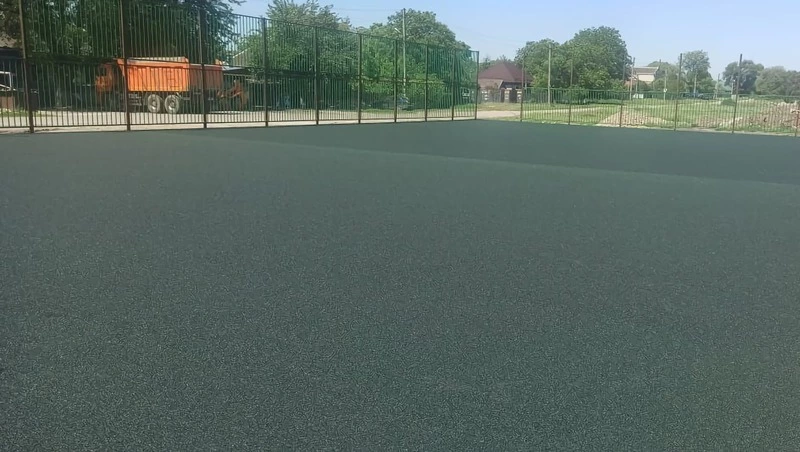 Так, в хуторе Славянском на финальной стадии находится оборудование спортивной площадки. Сейчас подрядчик укладывает безопасное покрытие, а затем приступит к установке ворот и баскетбольных колец.