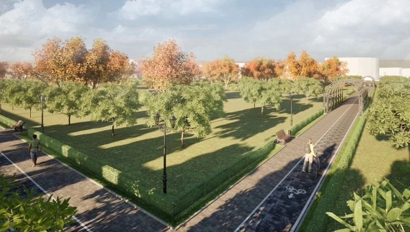 Обустроят участок от ТЦ до железнодорожной больницы. Там появится велодорожка, скамейки, освещение. Протяжённость объекта — примерно 300 м.